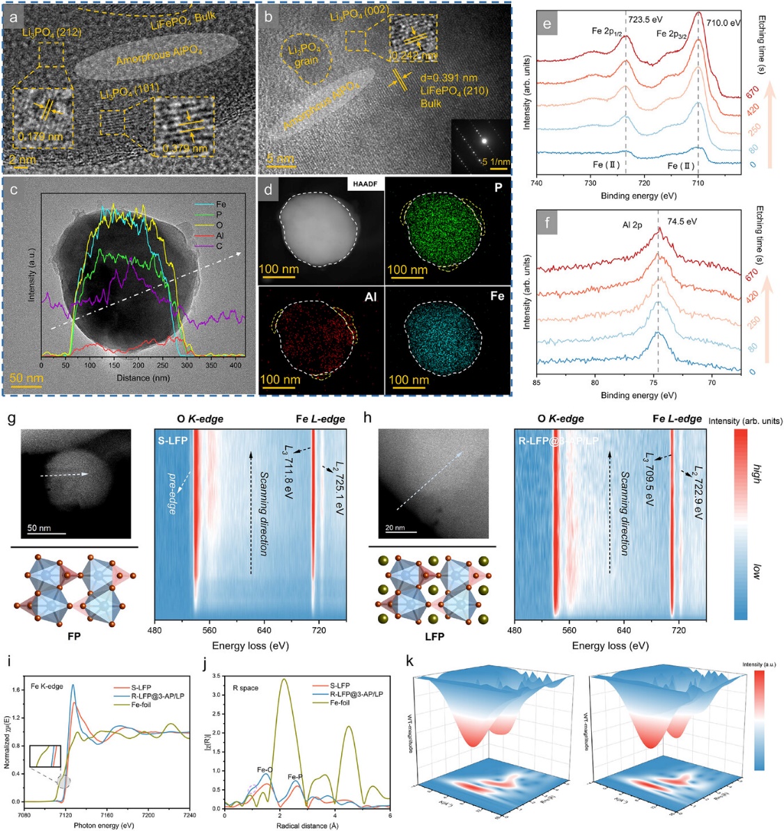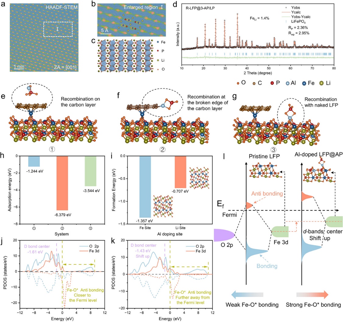 图2. 再生磷酸铁锂的综合结构表征结果。