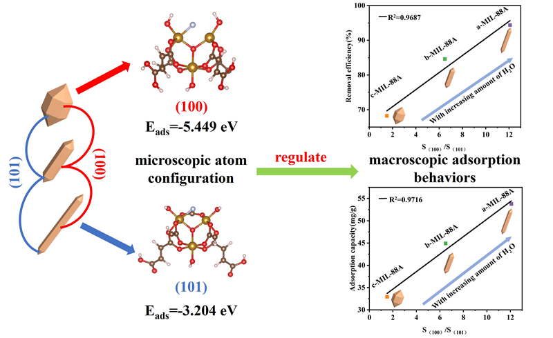 图1. 界面水调控MIL-88 A(Fe) (100) 和 (101) 晶面的氟化物晶面特异性吸附。