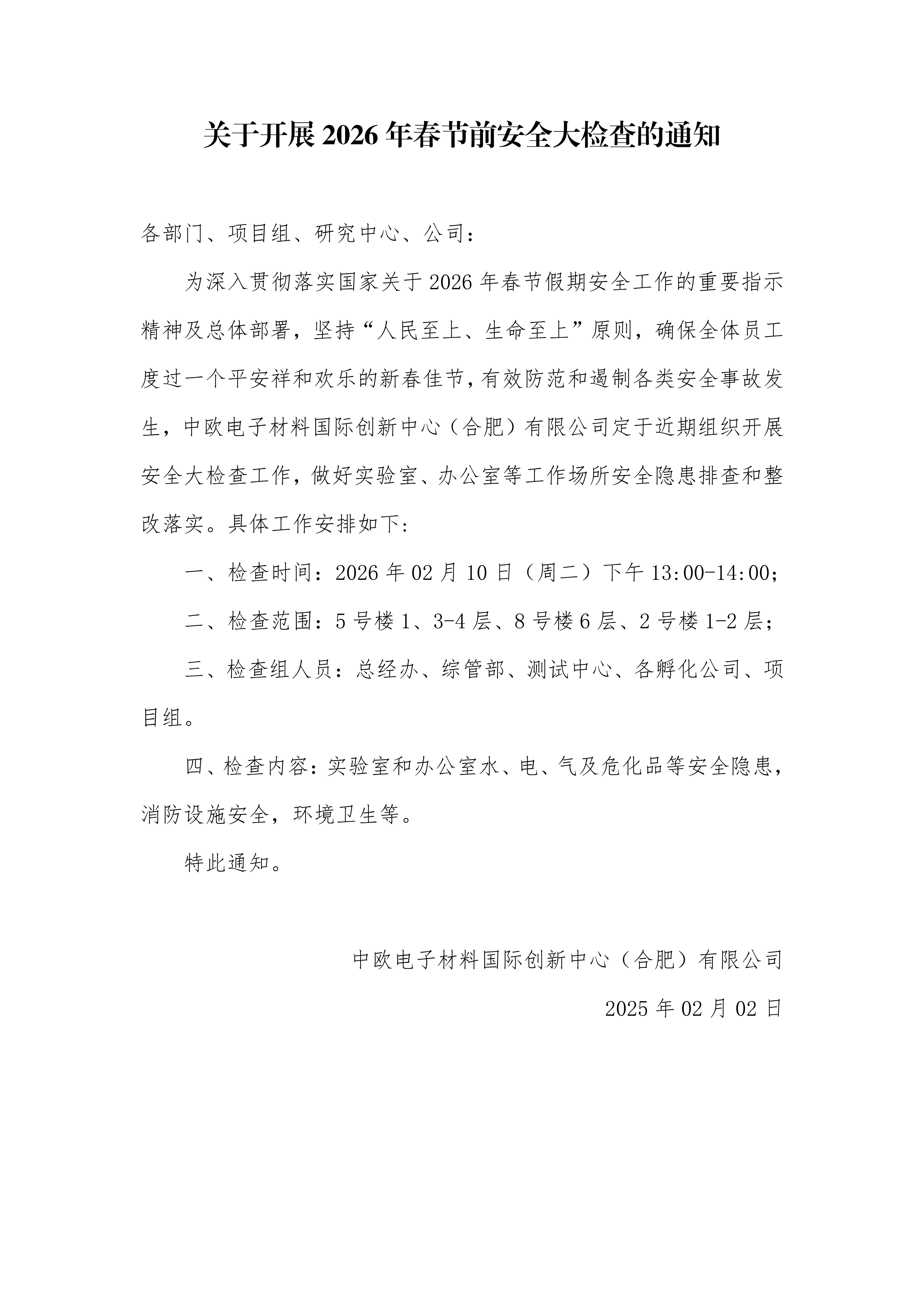 关于开展2026年春节前安全大检查的通知